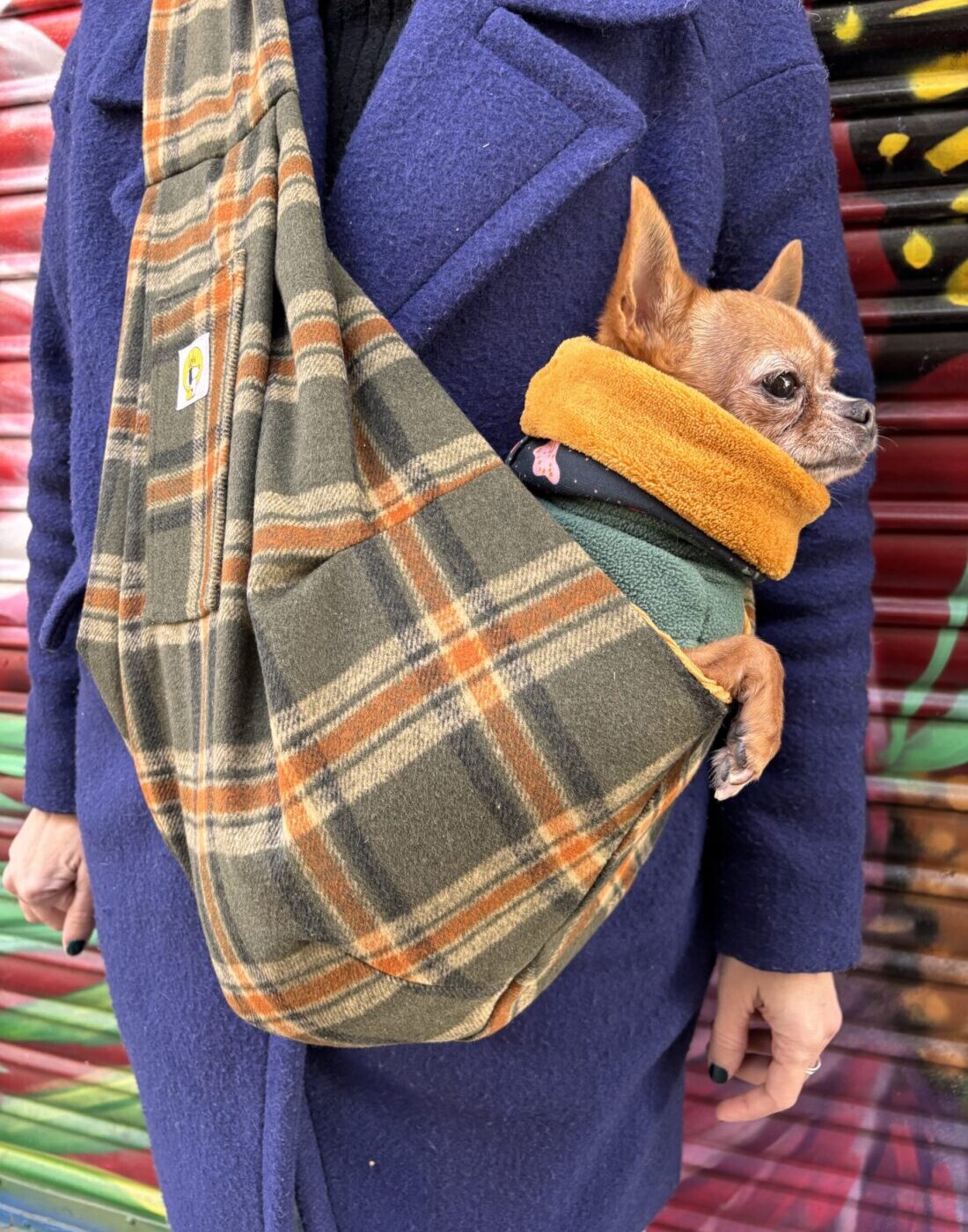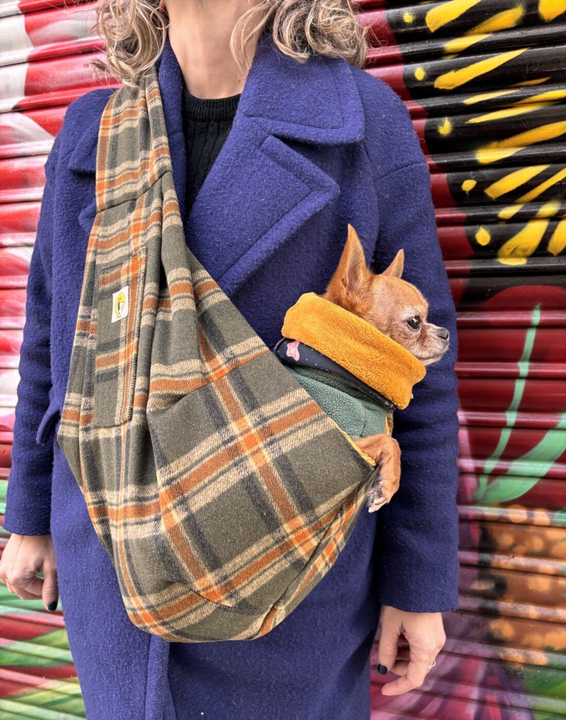 Nuestro bolso bandolera para transportar perros pequeños está confeccionado en Barcelona, con el tejido interior de pana de algodón, con un tacto suave semejante al terciopelo, pensando en el bienestar de tu perro y tu comodidad, este bolso es perfecto para paseos, viajes cortos o simplemente para llevar a tu perro a cualquier lugar, siempre contigo.